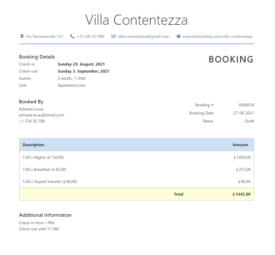 Your booking at (name of the place) is confirmed. Check out the details below: