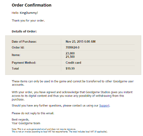 A purchase confirmation email refers to the kind of message sent to a client to affirm that the purchase has been successfully finished. A purchase confirmation email normally consists of details regarding the purchase itself, such as the goods bought, the price of each product, the date by which the purchase took place, and any applicable taxes or shipping fees.