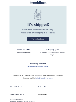 It is a kind of confirmation email that is highly given importance since it maintains the customers informed regarding the status of their orders. Furthermore, it gives the customers a sense of security that their ordered product is already on its way. Moreover, a shipping confirmation email aids in reducing customers' questions about the status of their purchase, mainly because it has the essential details to track their shipment.